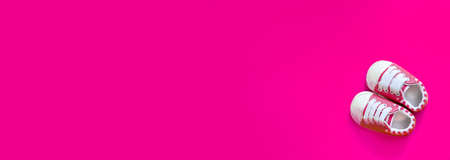 Shoes for newborns on a yellow background. Selective focus. Baby.