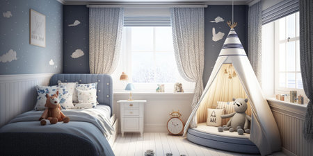 Blue led lighting shabby chic nursery interior design AI Generated Image