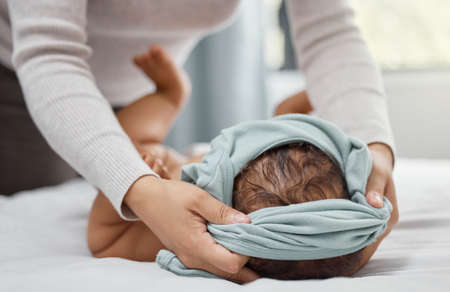 Fashion fit for a little prince. an unrecognisable woman changing her babys clothing at home.