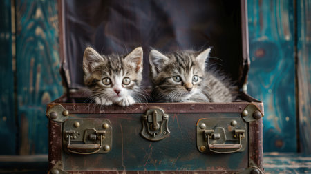 Playful Kittens in Vintage Suitcase: Two Cute Companions