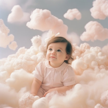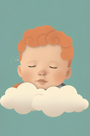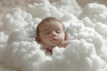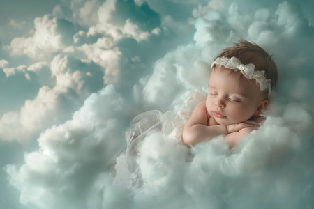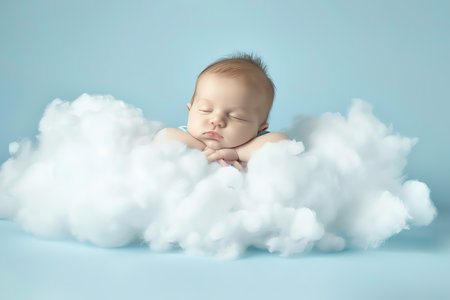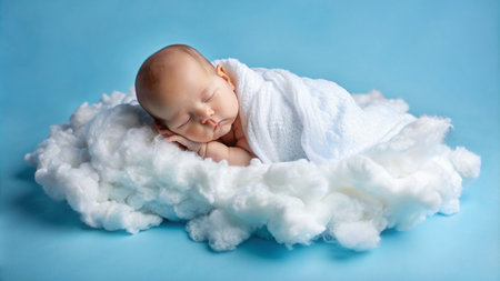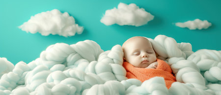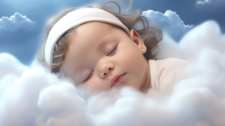 An AI generated illustration of a newborn baby peacefully sleeping, nestled among soft clouds