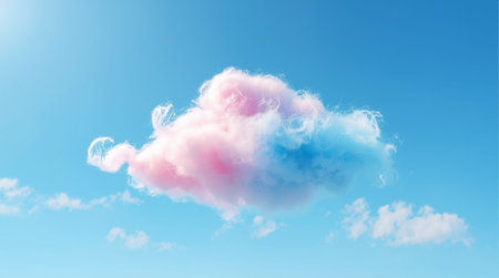 Vibrant pink and white cumulus cloud against clear blue sky on a sunny day.