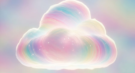 Rainbow cloud on pastel background. Vector illustration. Fantasy fractal design. Digital art. 3D rendering.