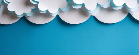 Paperart. White clouds on a bright blue background