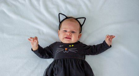 Little girl in a cat costume. Halloween idea for celebrating Halloween.