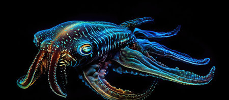 Cuttlefish on a black background and is marine molluscs of the order Sepiida. Same family as squids, octopuses, and nautiluses.