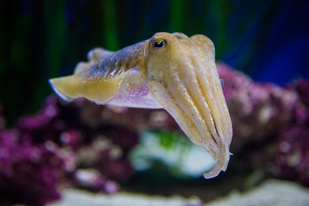 Cuttlefish swimming in the water in an aquarium