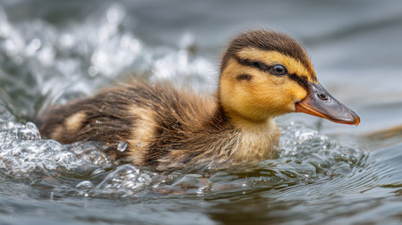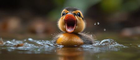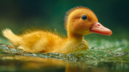 AI Generated. Innocent duckling swimming in the water happily Animal closeup