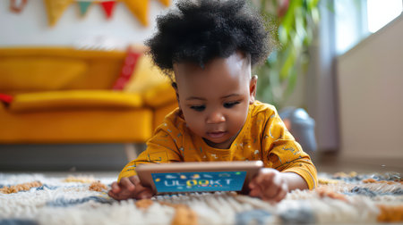 Toddler of African descent engaged in interactive gaming