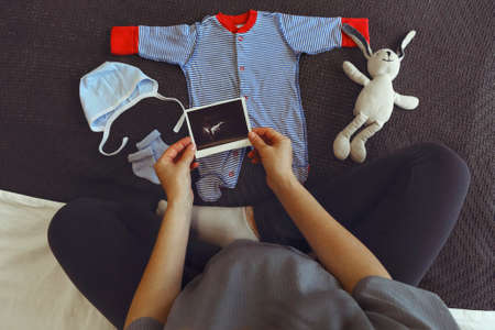 Ultrasound, pacifier, clothes and baby things