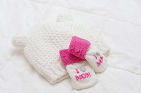 Baby clothes and accessories on blanket