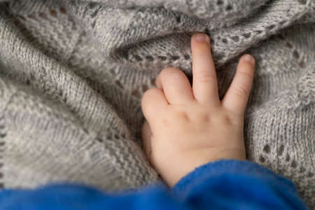 Baby hand on soft blanket