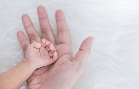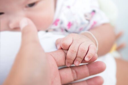 Asian baby hand on the adult hand