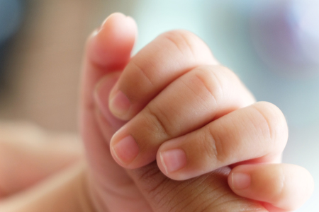 babys small hand holding mothers hand