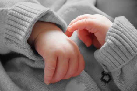 Lovely little clenched hand, infant hand.