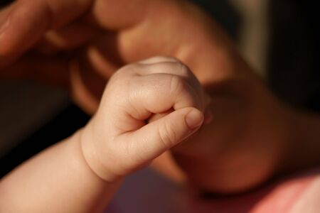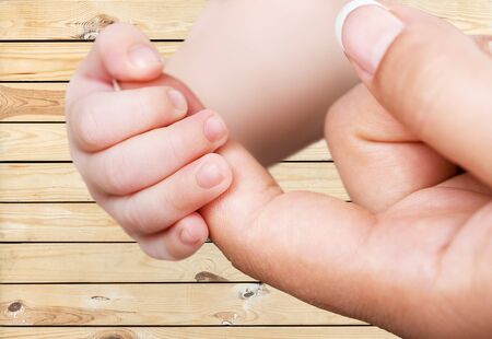 Closeup baby hand mother's hand