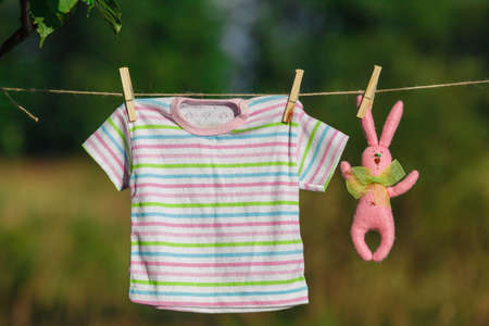 washing baby clothes. Linen dries in the fresh air. Selective focus. nature.