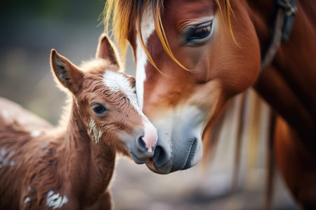 foal nuzzling with its mother