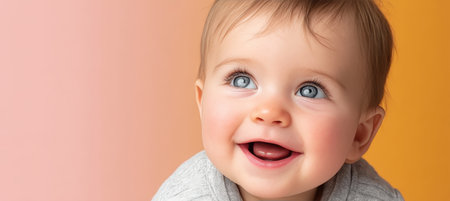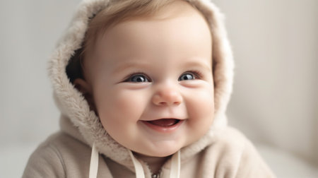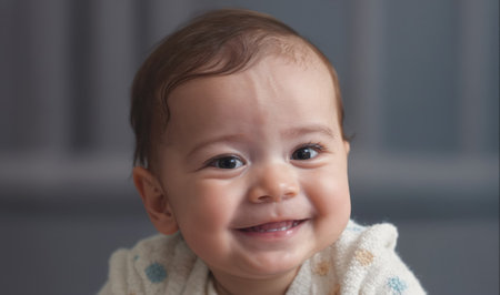 Adorable baby face beaming with joy and a charming smile, capturing pure innocence and happiness.