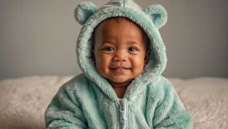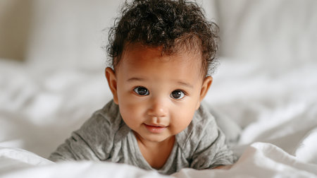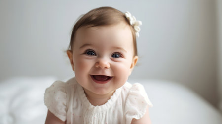 Adorable baby portrait with bright eyes and a genuine smile, capturing pure joy and innocence.