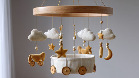 This delightful baby mobile features a playful design with a moon, cloud, and stars that add charm to any nursery while promoting a soothing sleep environment for infants.