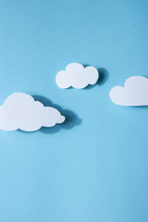 Paperart. White clouds on a bright blue background