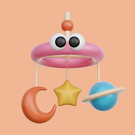 3D Baby Mobile, Cute Baby elements, 3d rendering.