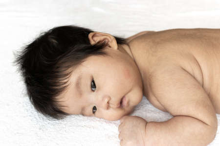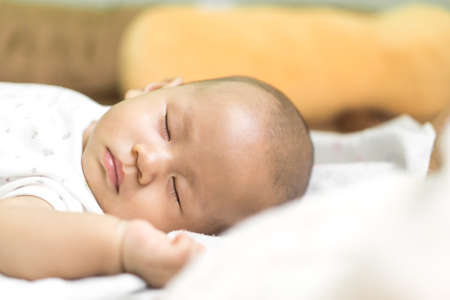Extremeclose up background of cute mixed-race baby with eyes closed sleeping soundly