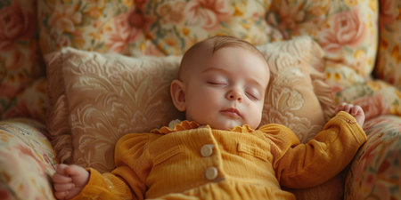 An adorable baby sleeping on soft rug in sunlit room, creating peaceful and serene atmosphere