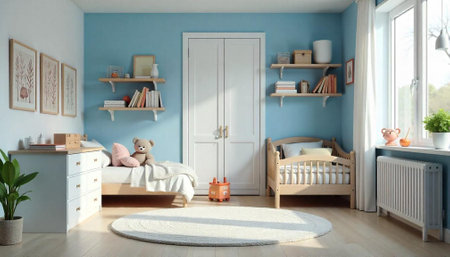 Cozy Scandinavian Newborn Baby Room with Plush Toy and Children Accessories
