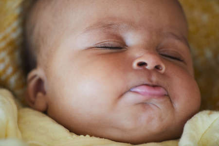 Extremeclose up background of cute mixed-race baby with eyes closed sleeping soundly