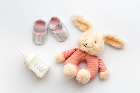 Baby shirt bodysuit with bottle of milk and kids accessories