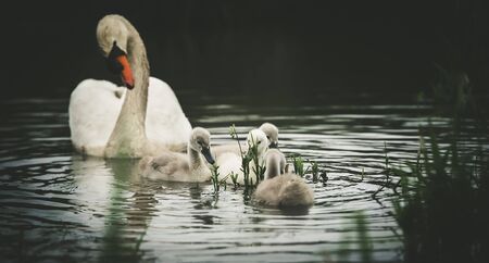 mother swan with youth concept of love, protection and guidance picture taken with vignetting style