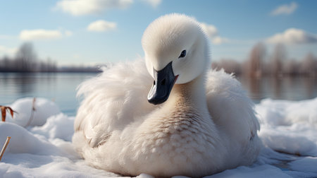baby swan sleeping at the lake
