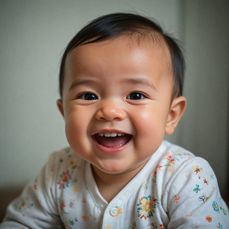 Adorable Infant Radiating Pure Joy with a Bright Smile, Sparkling Eyes, and Cheerful Expression