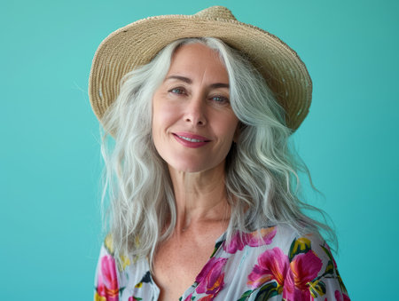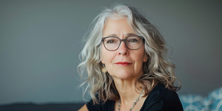 stunning beautiful and self confident best aged woman with gray hair looking into camera, portrait. Generative AI image