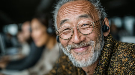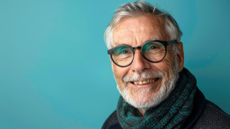 This captivating portrait features an elderly man with silver hair and a warm, inviting smile, radiating wisdom and kindness. His expressive eyes and gentle demeanor create an atmosphere of warmth and approachability, making this image perfect for themes of friendship and life experience.