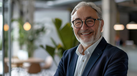 Smiling older professional manager in a corporate environment, showcasing experience and reliability