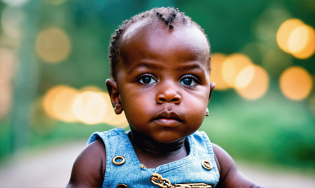 An Afro-American baby wrapped in a cozy white blanket, gazing curiously at the camera