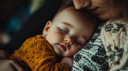 A serene moment capturing a newborn baby peacefully resting on their mother's chest, embodying love and tenderness in a cozy embrace.