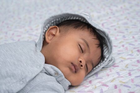 Newborn baby boy sleeping on cotton blanket, Little boy on bed