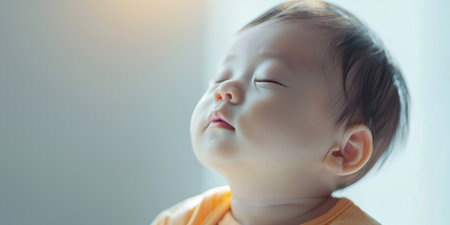 Adorable baby with expressive eyes and a charming smile, radiating joy in a serene background.
