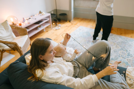 A warm and inviting indoor scene filled with string lights that create relaxed vibes and comfort
