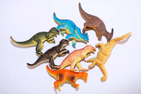 Toy dinosaur on a white background. Toy for children. Concept. Children's game.