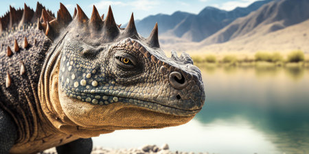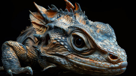 A close-up shot of a lizard with detailed scales and vibrant colors, showcasing its unique texture and features.
