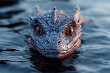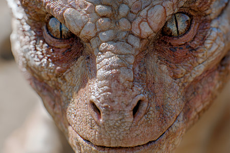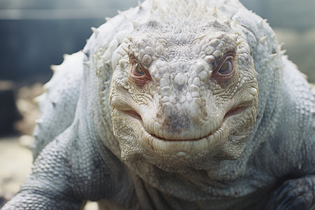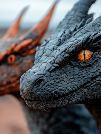 Close-up of a reptile's head with intricate scales and piercing eyes