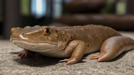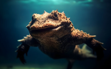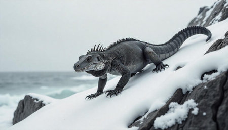 The endangered monitor lizard crawls with aggression, mouth open generated by artificial intelligence