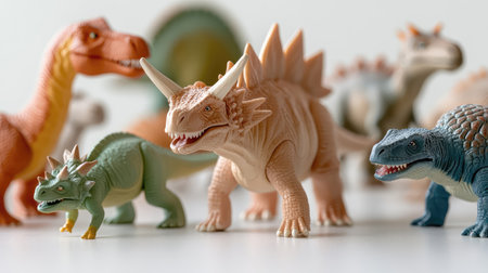 A vibrant display of dinosaur toy figures in various colors and sizes offers a fun and educational experience for children, inspiring creativity and imaginative play.