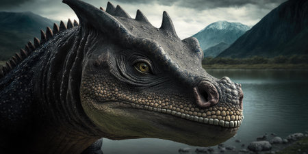 Prehistoric creature or dinosaur in the wild nature. Realistic style drawing. superlative generative AI image.