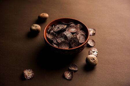 Betel nut chips in a bowl also known as slices of supari in india, used in Paan masala